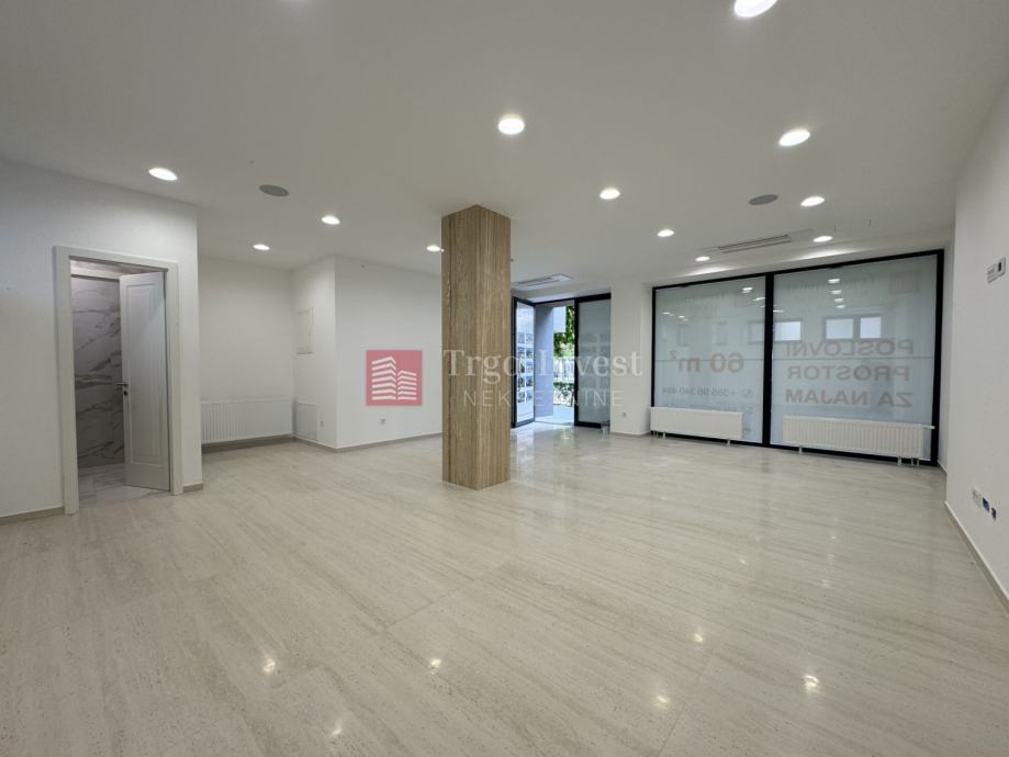 Iznajmljuje se potpuno obnovljen i moderno uređen poslovni prostor površine 60 m², smješten u prizemlju stambeno-poslovne zgrade, u jednoj od najprometnijih ulica u samom centru Slavonskog Broda.