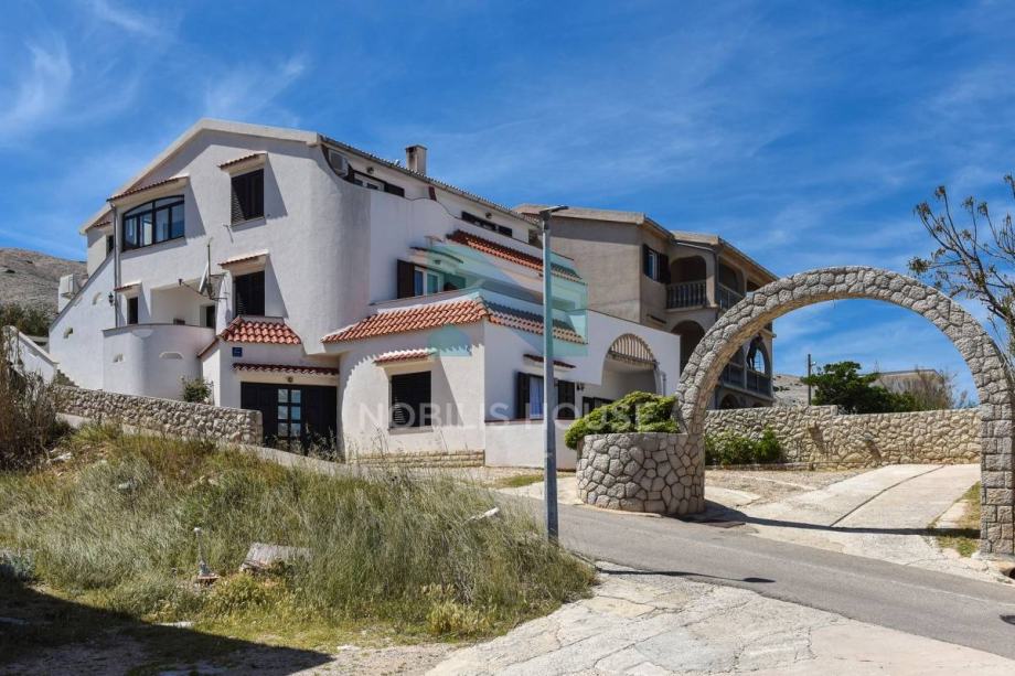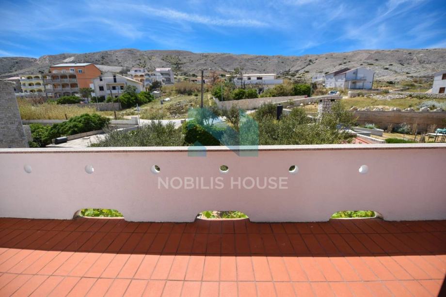Pag, otok Pag. Prodajemo trosobni apartman površine 80,47 m2 u gradu Pagu. Apartman se nalazi u novijoj kući sa četiri apartmana i sastoji se od dnevnog boravka, kuhinje, dvije spavaće sobe, dvije kupaonice, predsoblja i dvije velike terase, jedna s pogledom na more i Pag. Pripadaju mu dva parkirna mjesta, a svi bitni sadržaji su u blizini (plaža je udaljena 150 m od apartmana). Također mu pripada i korištenje uređenog vrta za roštiljem i šankom površine 28 m2. Apartman je etažiran, vlasništvo čisto 1/1, bez opterećenja.