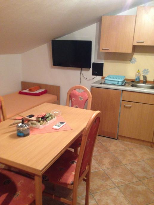 Prodaje se kuća sa 6 opremljenih apartmana koji su u najmu cijele sezone,apartman u prizemlju za boravak vlasnika ,obiteljski.Sveukupno 29 ležaja je za najam.Svi su apartmani opremljeni i u funkciji od namještaja do suđa. ČlKuća ima okućnicu 600 m2,u dvorištu prizemni objekat u kojem se može stanovati .Kuća se sastoji od prizemlja i dva kata.Garaže se nalaze sa prednje strane kuće.Dvorište uređeno,isprd kuće 5 vozila se može parkirati.Ispred kuće stepenicama se silazi do mora,plaže.