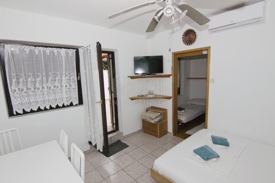 Sastoji se od boravka sa kuhinjom, kupaonice i jedne manje sobe, ima veliku terasu od 24m2 sa kaminom, djelomično natkrivenu lozom.
