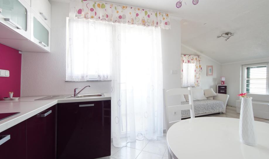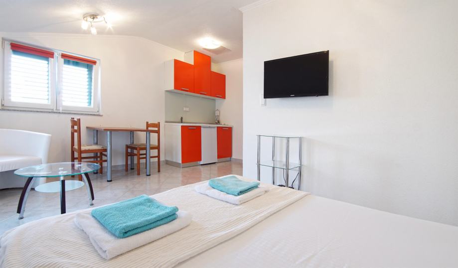 * studio apartman 6. ima bračni krevet i klik ležaj za 2 osobe.