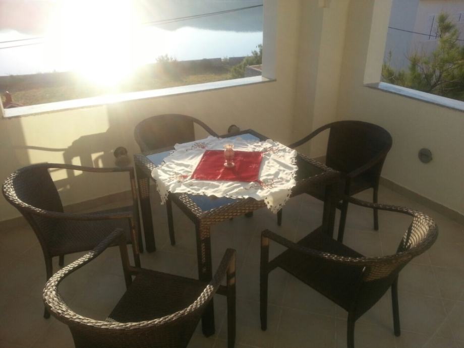 Drugi kat: tu se nalaze 4apartmana. 3 (5.,7.,8. ) sa: 1 spavača soba, dnevni boravak i kuhinja, te kupaonica s WC - om i terasa s pogledom na more. Jedan od ta 4 (6.) je studio apartman. On ima ima kuhinjicu s boravkom, kupaonicu WC - om i nema balkon.