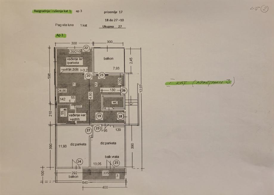 Prvi kat: nalaze ista 2 ista apartmana kao i u prizemlju, 3. i 4..