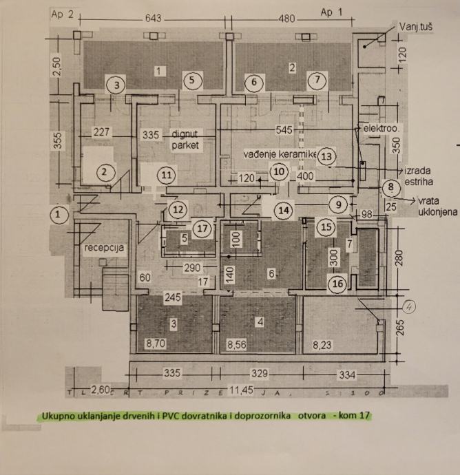 Svi apartmani imaju po jedan klima uređaj. Objekt se prodaje sa kompletnim namještajem.