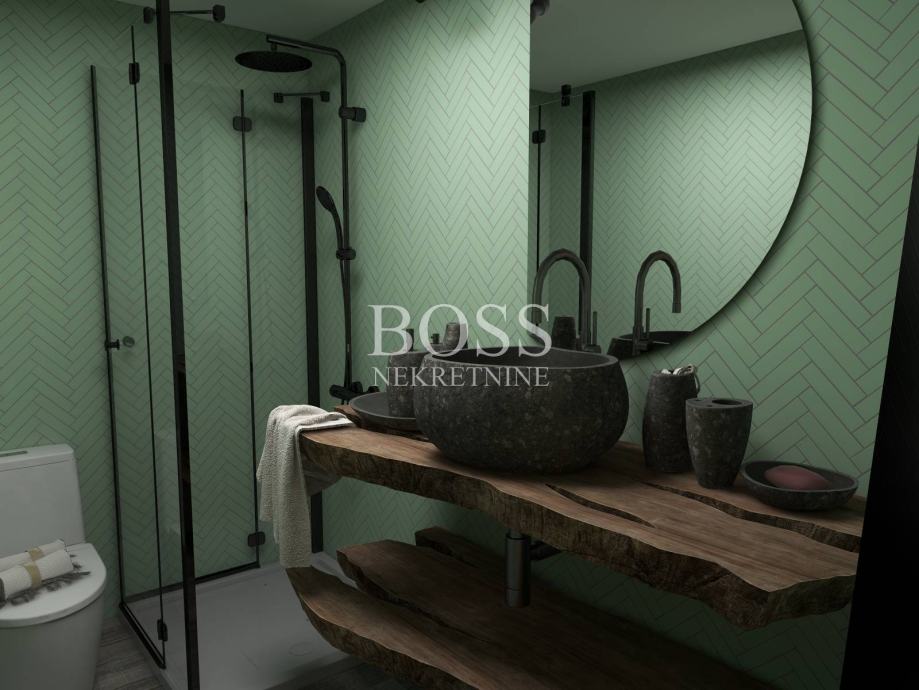 Pag, Kolan, novogradnja sa šest stanova. 2S+DB s dvije kupaone, lođom i pogledom na more. Zgrada je u završnoj fazi radova, sve prostorije imaju klima uređaj, a u kupaonama je podno grijanje. Odlična i mirna lokacija, blizina bajkovite plaže Sv. Duh. U fotografijama je primjer 3D vizualizacije uređenja stana. Nekretnina vrijedna pažnje! Boss, kontakt: 091/500-7578
