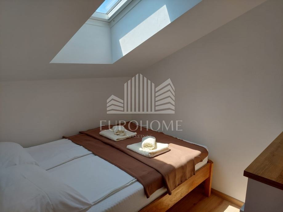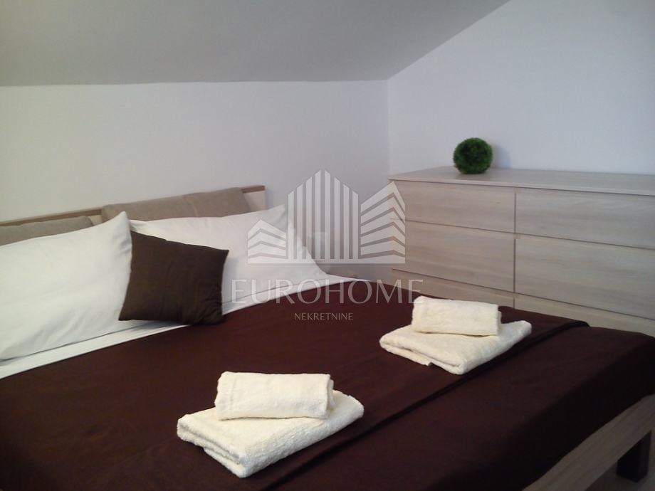 Prodaju se dva apartmana u potkrovlju manje apartmanske zgrade u Košljunu na otoku Pagu samo 120 m od mora. Svakom apartmanu pripada jedno parkirno mjesto u ograđenom dvorištu zgrade.