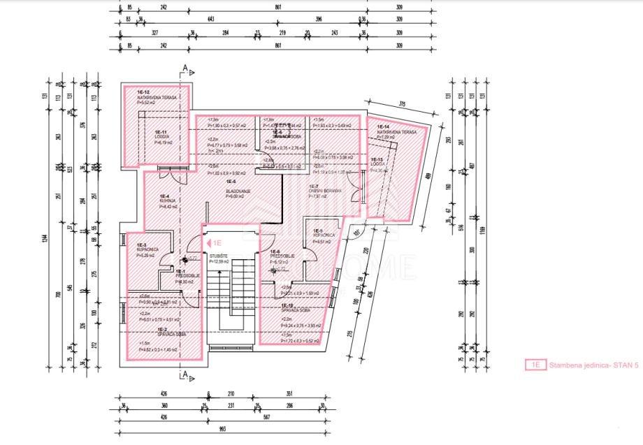 Jedan apartman je manji i sastoji se od jedne spavaće sobe, kuhinje s blagovaonicom i dnevnim boravkom, kupaonice i terase.