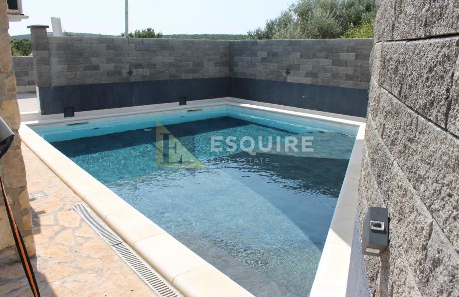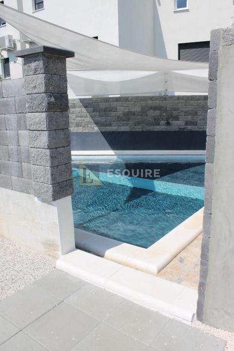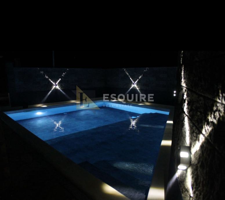Stanu pripada još vrt, vrtna konoba 20m2, bazen te 4 natkrivena parkirna mjesta (zatvoreni parking).