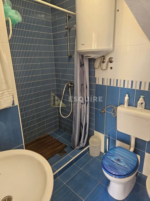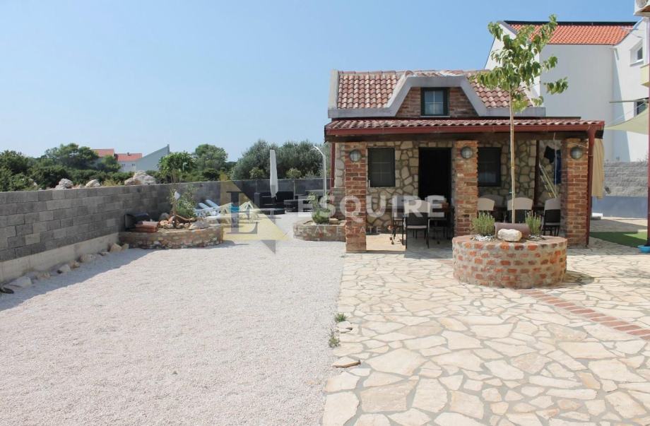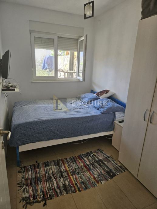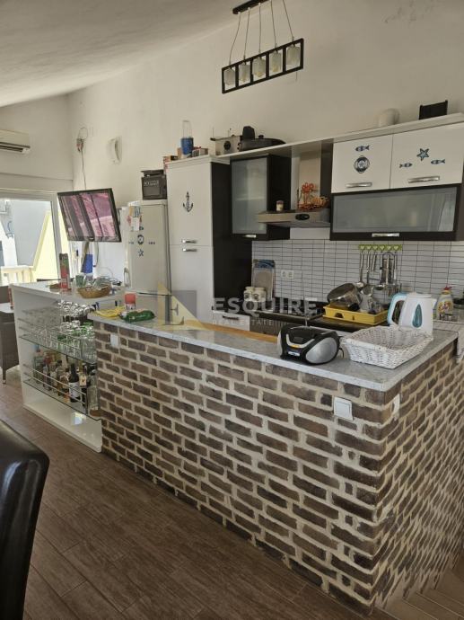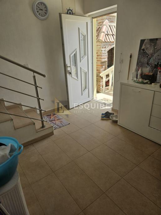 Na udaljenosti od samo 150m od mora, smjestio se ovaj dvoetažni apartman s velikim vrtom, bazenom i čak 4 natrkrivena parkirna mjesta.
