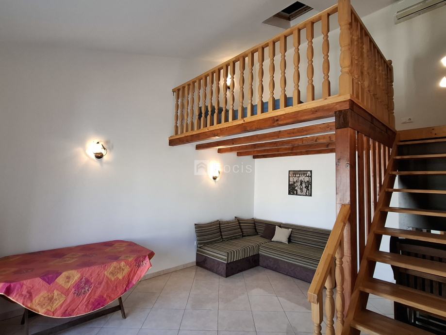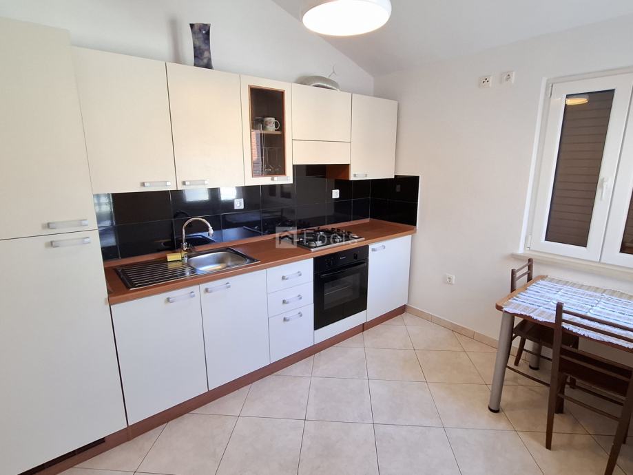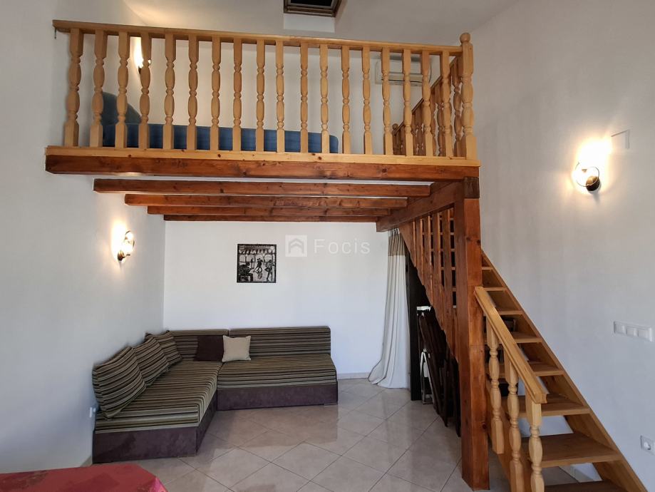 Na prvom katu je stan koji se sastoji od hodnika, kupaonice, kuhinje s blagovaonicom, dnevnog boravka i jedne spavaće sobe.