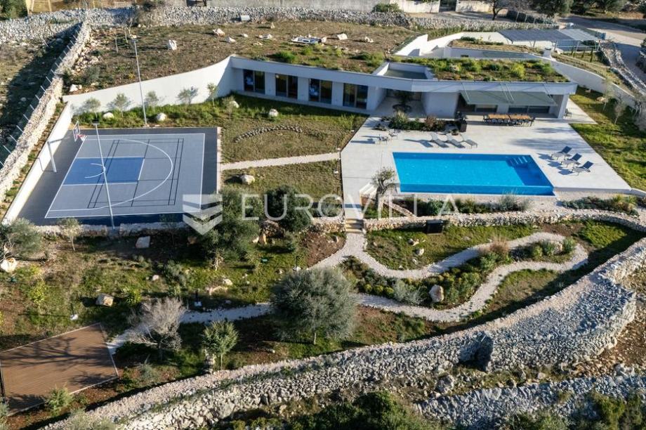 Predstavljamo vilu posebne i jedinstvene arhitekture na spektakularnoj, intimnoj lokaciji u blizini mjesta Lun na otoku Pagu. Smještena usred drevnog maslinika, vila je ukopana u teren i prekrivena zelenim krovom, čime se prirodno stapa s okolišem i ostavlja dojam potpune privatnosti.