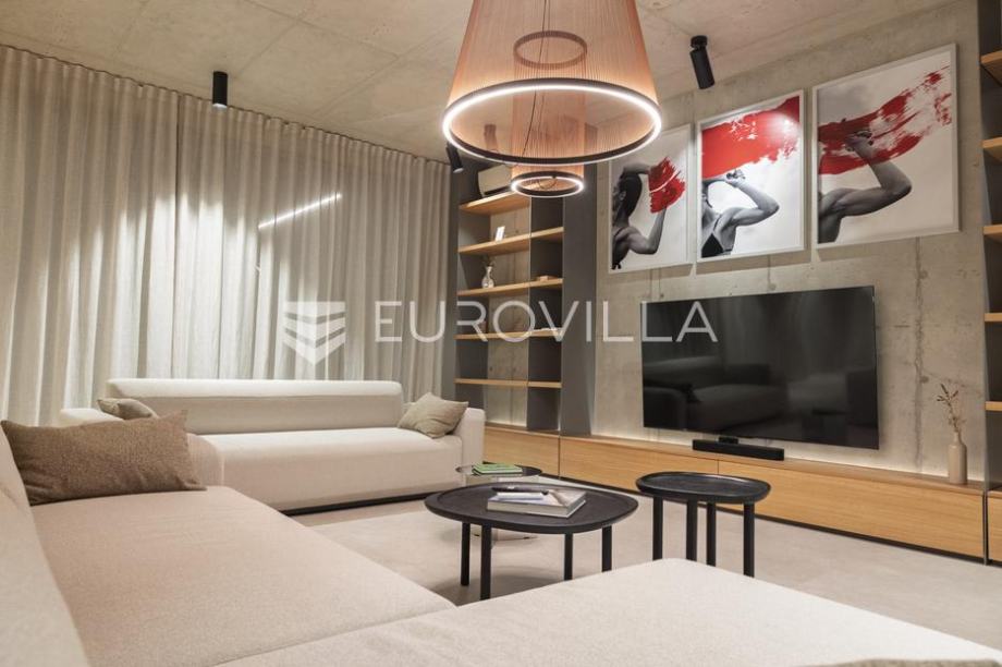 Dnevni boravak 75 m² – svijetao, prostran i miran, centralni dio kućeModerna kuhinja dizajnirana za zajedničko kuhanje i “život na terasi”4 spavaće sobe (svaka cca 18 m²)Svaka spavaća soba ima vlastitu prostranu kupaonicuEksterijer i sadržaji