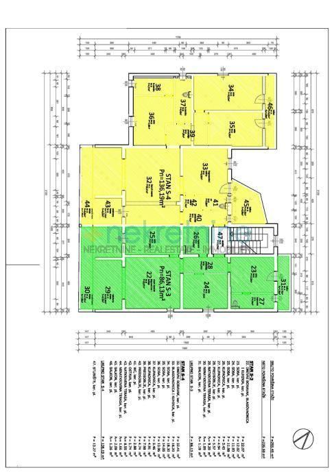 Stan ima neto korisnu površinu od 136,19 m², a sastoji se od: dnevnog boravka, blagovaonice i kuhinje, tri spavaće sobe, dva predsoblja, dvije kupaonice, dodatnog WC-a, ostave, natkrivene i nenatkrivene terase te dva balkona. Uz stan dolaze i dodatni sadržaji: spremište (SP5 – 3,80 m²) te dva parkirna mjesta (P6 i P7 – svako po 3,36 m²), što čini ukupnu neto korisnu površinu od 146,71 m².