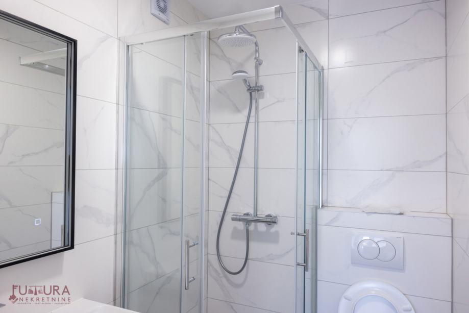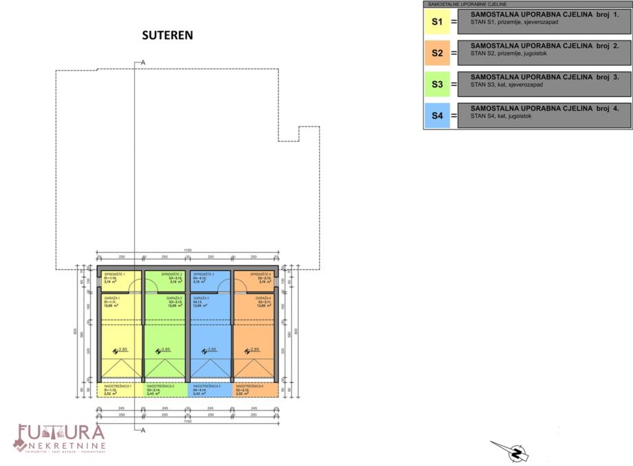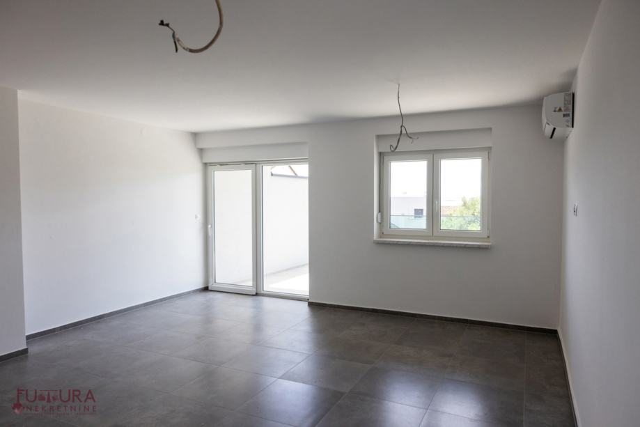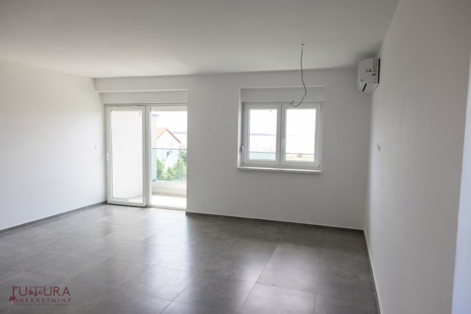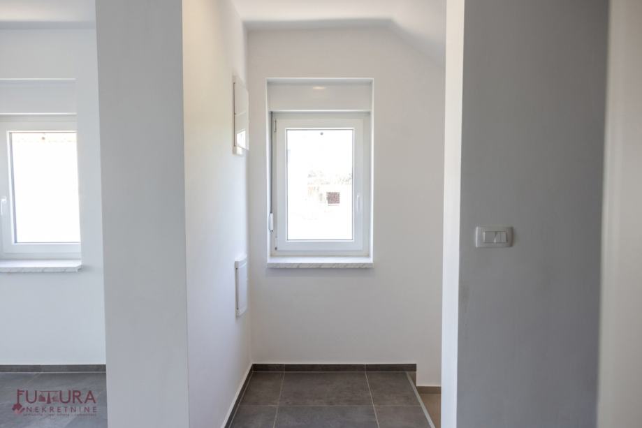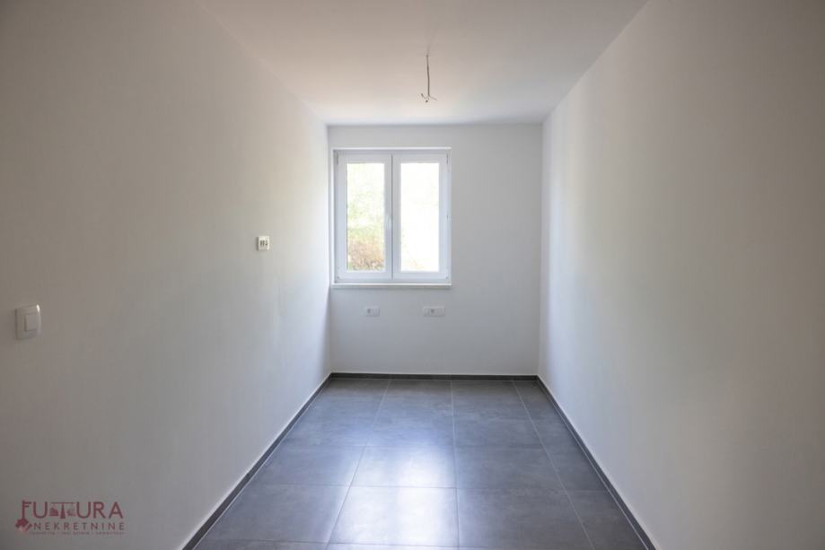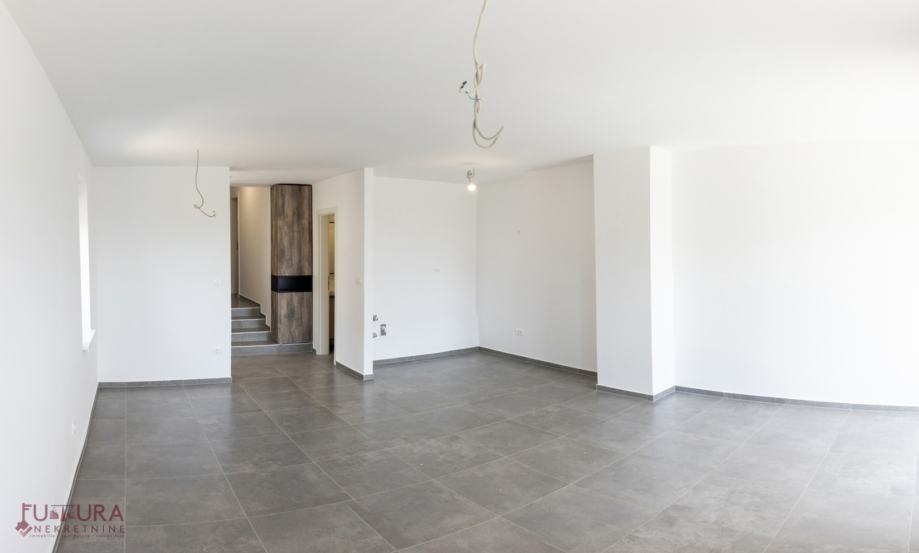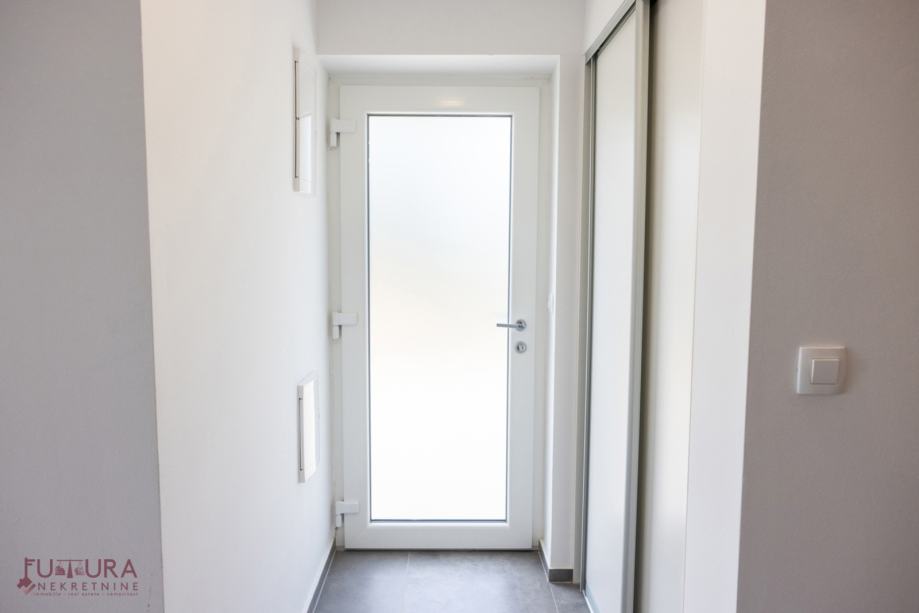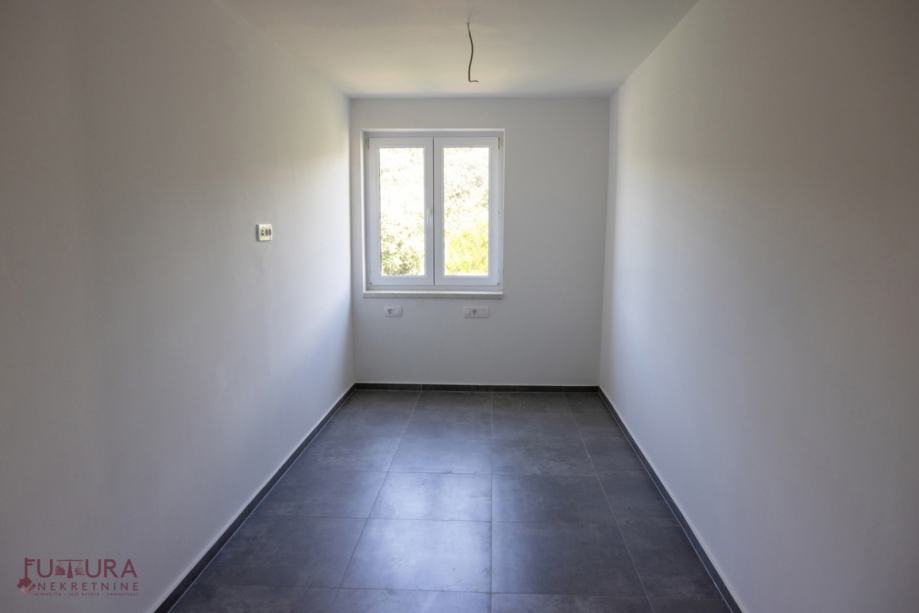 Sastoji se od: dvije spavaće sobe, dnevnog boravka + kuhinja + blagovaona, hodnika, ostave, dvije kupaonice i lođe.