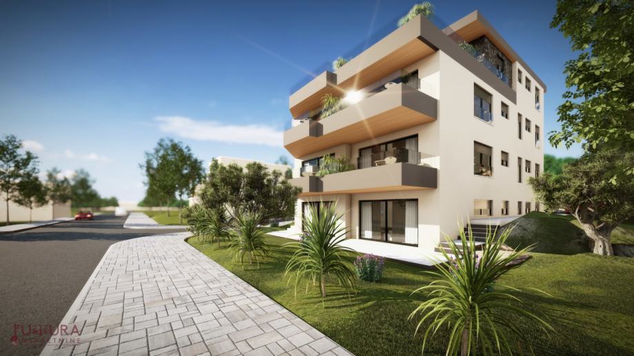 Pag - Mandre, prodaje se trosobni apartman od 110,34 m2 na trećem katu stambenog objekta sa ukupno sedam apartmana u izgradnji, visokokvalitetna gradnja, planirano useljenje 06/2025 godine.