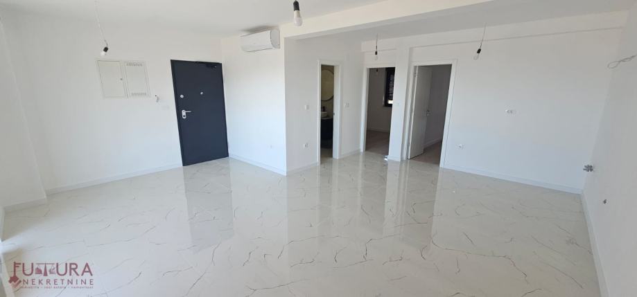 Sastoji se od: dvije spavaće sobe, dnevnog boravka + kuhinja + blagovaona, kupaonice i natkrivene terase.