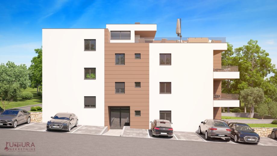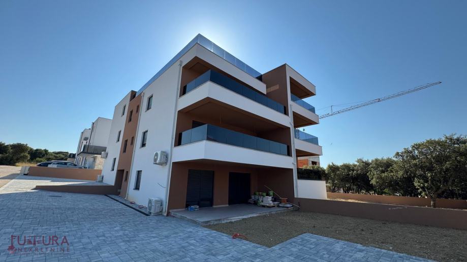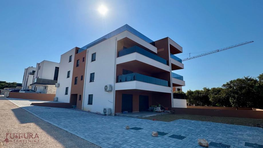 Pag - Mandre, prodaje se dvosobni apartman od 62,35 m2 na drugom katu stambenog objekta u izgradnji sa ukupno devet apartmana, visokokvalitetna gradnja, planirano useljenje 05/2025.