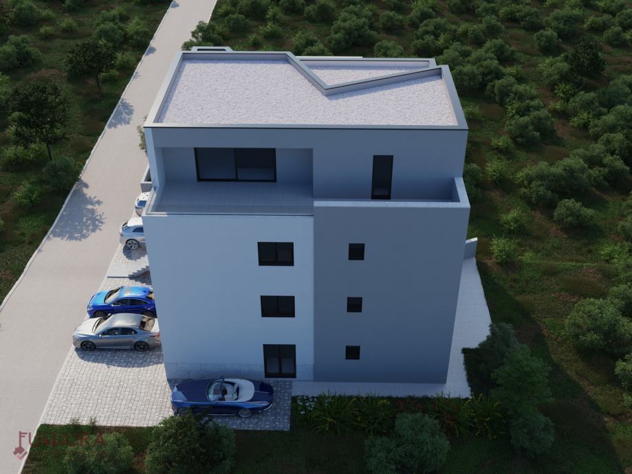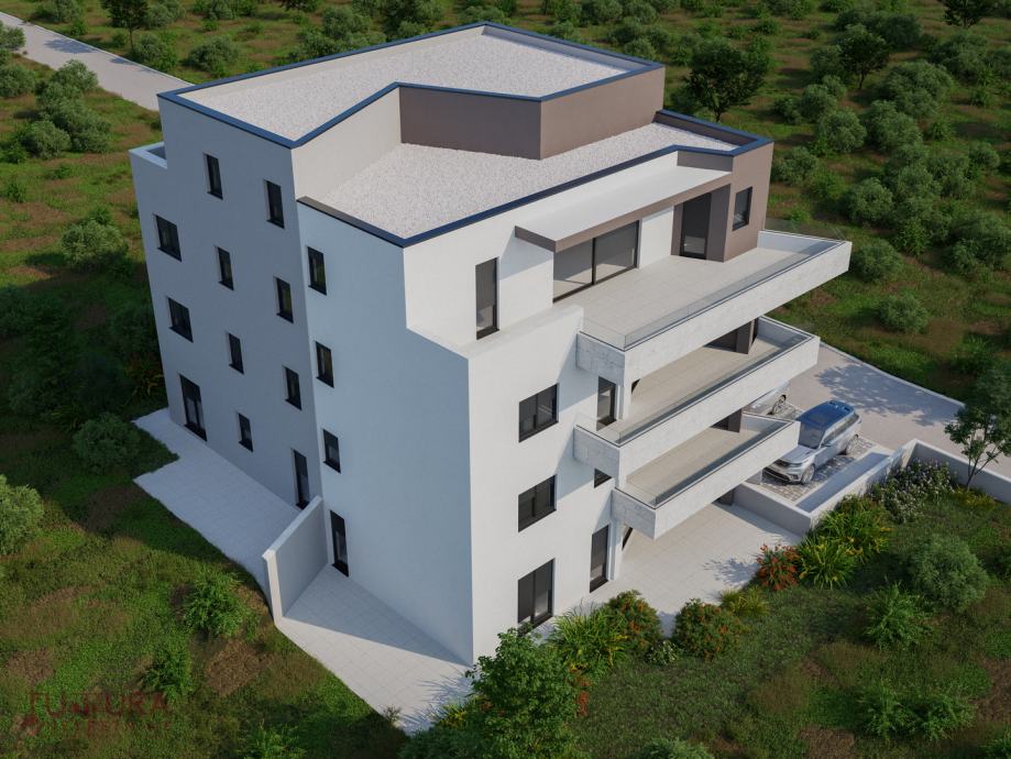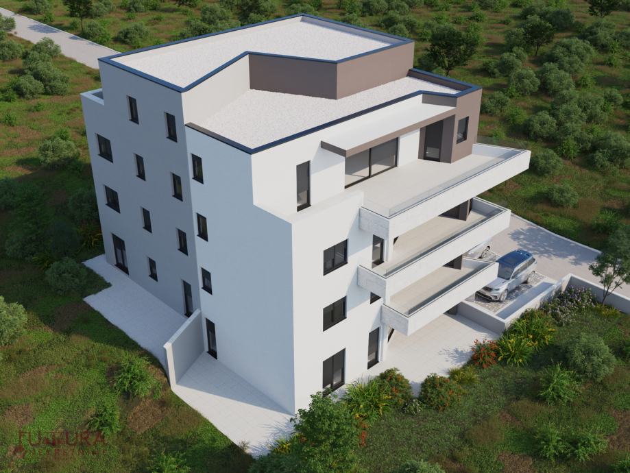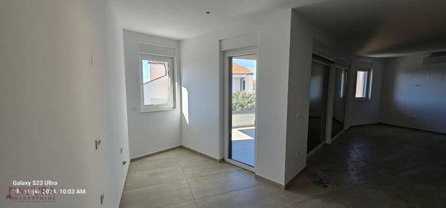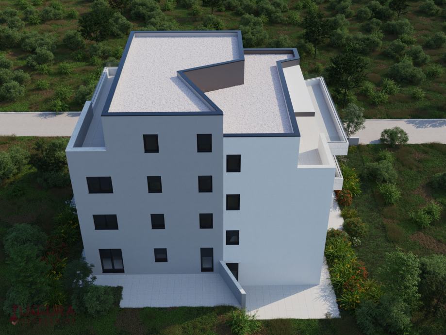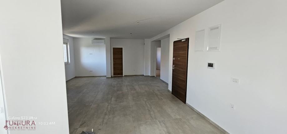 Sastoji se od: dvije spavaće sobe, dnevnog boravka + kuhinja + blagovaona, dvije kupaonice i terasa.