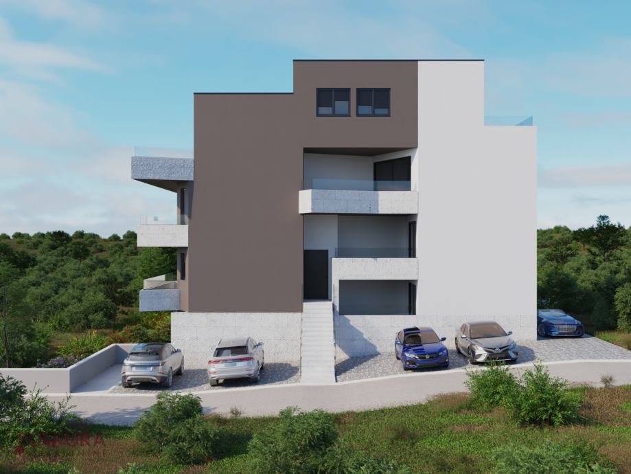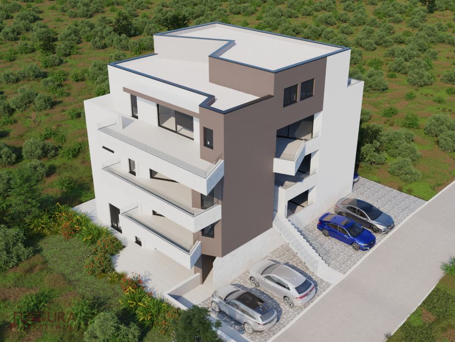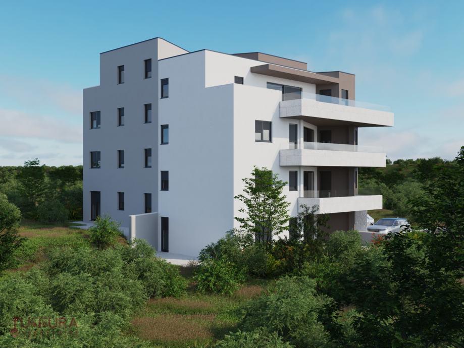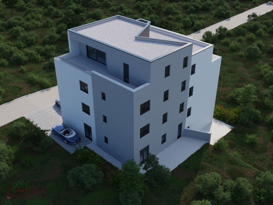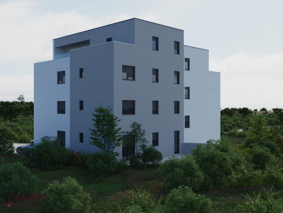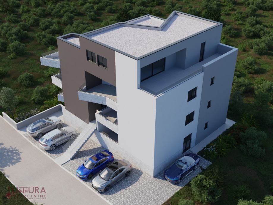 Sastoji se od: dvije spavaće sobe, dnevnog boravka + kuhinja + blagovaona, dvije kupaonice i terasa.