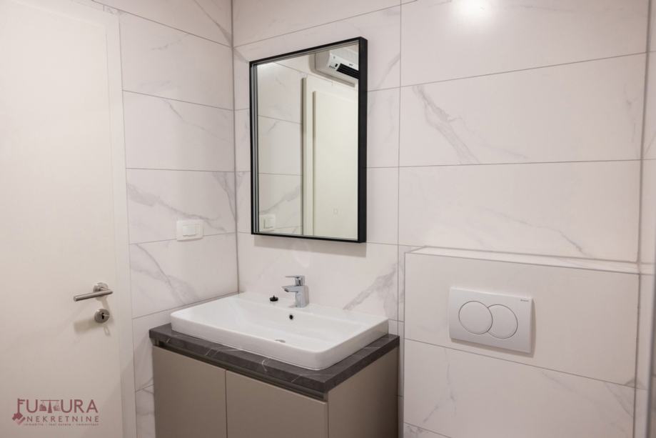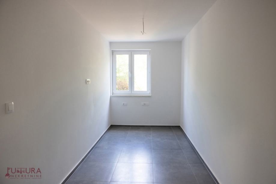 Sastoji se od: dvije spavaće sobe, dnevnog boravka + kuhinja + blagovaona, hodnika, ostave, dvije kupaonice i lođe.