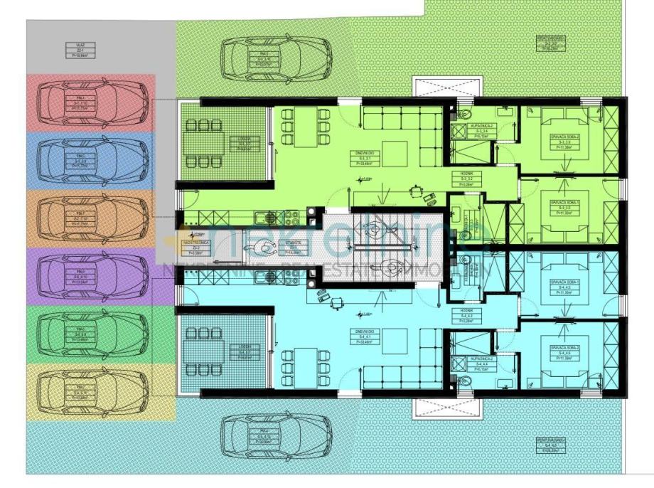 Stan S6 ukupne stambene površine 90,30 m² sastoji se od ulaznog hodnika, dvije kupaonice, dnevnog boravka s kuhinjom i blagovaonicom te dvije spavaće sobe. Iz dnevnog prostora izlazi se na prostranu loggiu koja pruža dodatni osjećaj udobnosti i povezanost s vanjskim prostorom. Stanu pripada i spremište u podrumu zgrade te vlastito parkirno mjesto, koje je uključeno u cijenu.