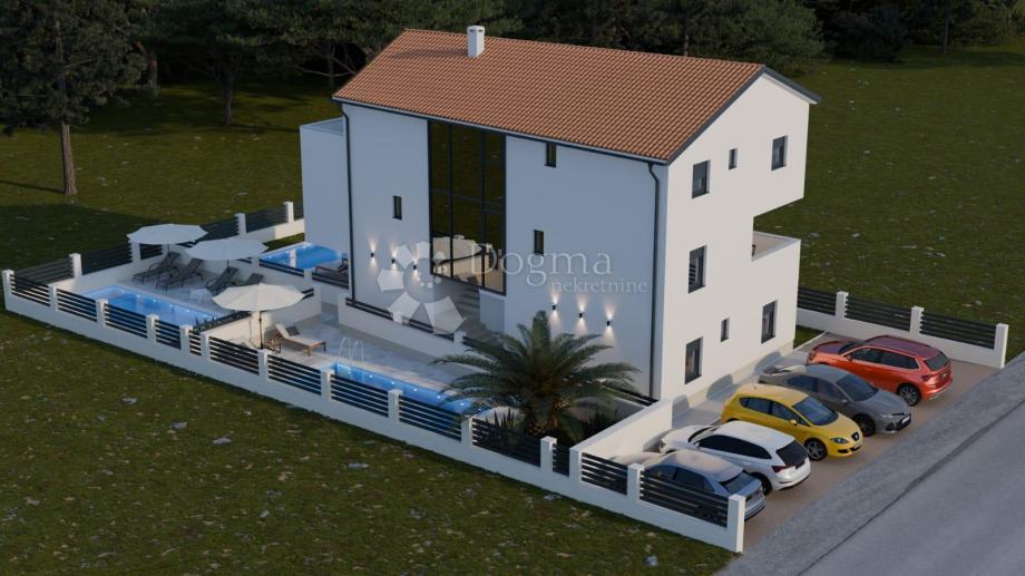 Apartmanska kuća sa samo tri stambene jedinice, na svakoj etaži po jedan apartman. Svaki apartman ima u vlasništvu i dio okućnice.
