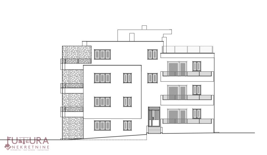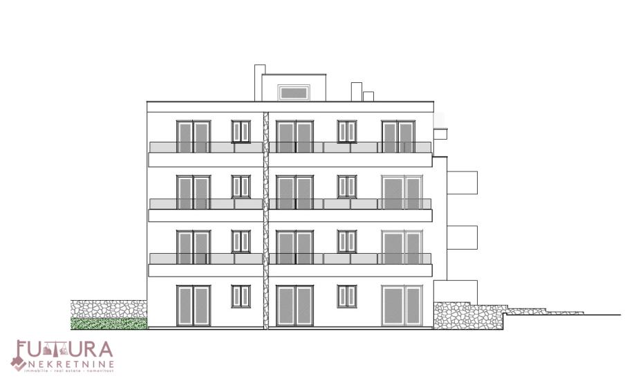 Sastoji se od: dvije spavaće sobe, dnevni boravak + kuhnija + blagovaona, predsoblja, kupaonice i natkrivenog balkona.