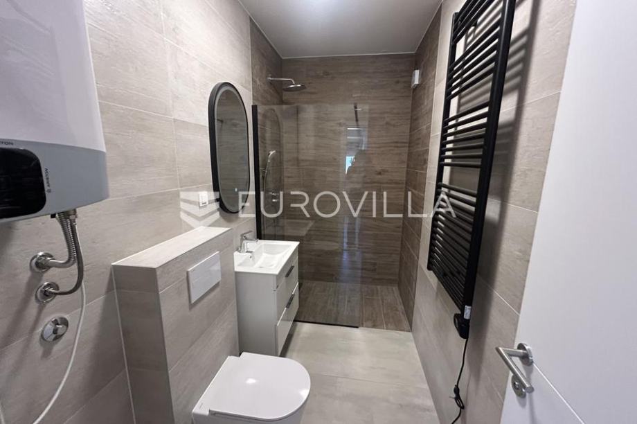 Kupaonice: podna i zidna obloga: keramičke pločice 60 cm x 120 cm, Hansgrohe podžbukni tuš sistem + armature, premium umivaonik, GEBERIT ugradbeni vodokotlić + rimless WC školjka sa soft close daskom, radijator ljestve