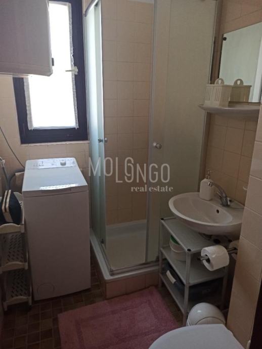 Na 1. etaži apartmana nalazi se: hodnik, kupaonica s WC-om, ostava, dnevni boravak s kuhinjom i blagovaonicom, lođa koja je zatvorena s PVC kliznom stijenom i roletom.
