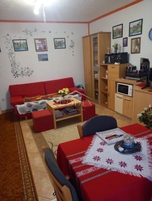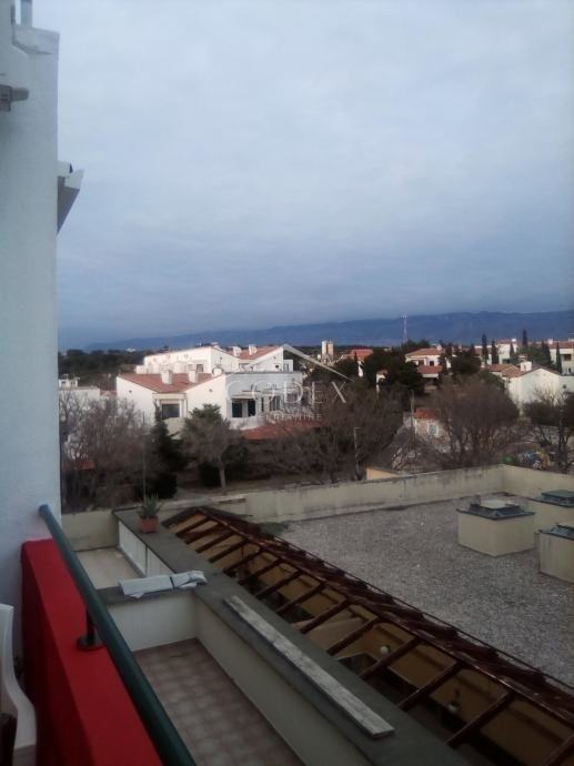 U Novalji , u apartmanskom naselju Gajac, istočna strana, prodaje se lijepo uređeni i namješteni apartman 44 m2, natkriveni balkon, te iznad balkona 6,40 m2 otkrivene terase idealno za sunčanje. Sveukupna površina 50,40 m2. Apartman je kompletno renoviran 2020. godine, nova ulazna vrata, nove instalacije, nove moderne pločice, nova kupaona "Kolpa-san", novi namještaj rađen po mjeri i kućanski aparati, nova klima u dnevnom boravku, i manja klima za grijanje i hlađenje u spavaćoj sobi, uređeni plafoni u kocki, uređeni balkon i terasa. Apartman se sastoji od velikog hodnika, kupaone, spavaće sobe, dnevnog boravka s kuhinjom, blagovaone, ostave (špajza), natkrivenog balkona i terase. Nova stolarija s roletama.