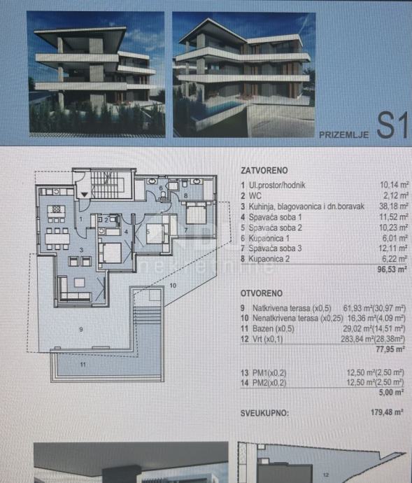Prodaje se luksuzan stan u prizemlju s bazenom i vrtom na otoku Pagu u Novalji. Iz stana se pruža predivan pogled na more, a zgrada je smještena na cca 500m od mora.