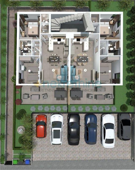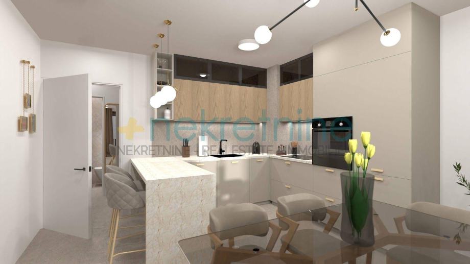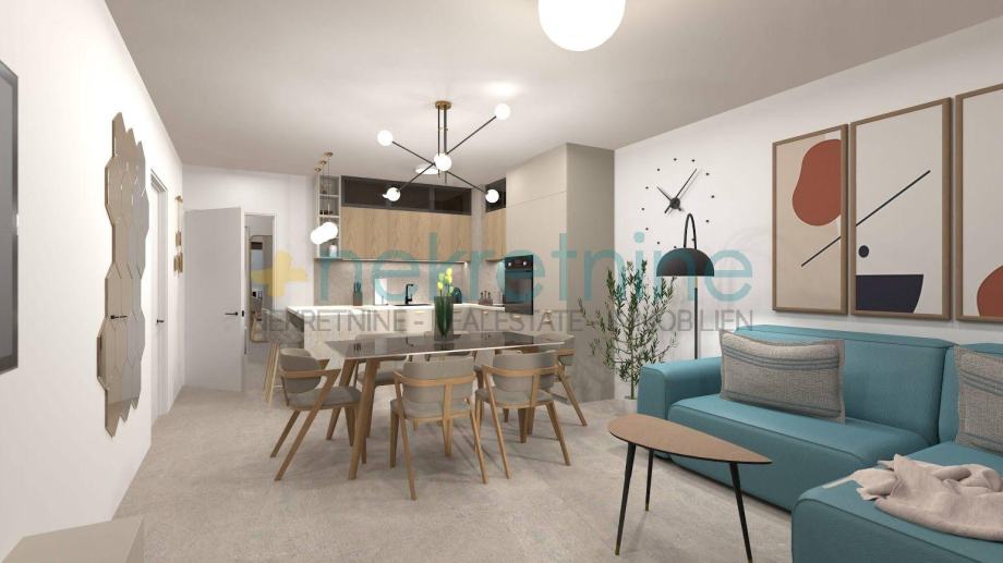 Prikazane 3D slike služe samo kao ideja i za vizualizaciju unutarnjeg i vanjskog uređenja. Stanovi se prodaju nenamješteni.