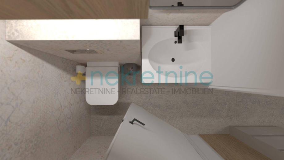 Svi podovi u stanu izvedeni su od visokokvalitetne keramike modernih i ugodnih boja, što omogućuje dugovječnost i jednostavno održavanje. Kupaonica ima električno podno površinsko grijanje i električni kupaonski radijator za ugodne zimske dane. Kupaonica i WC opremljeni su kvalitetnom Geberit sanitarnom opremom.