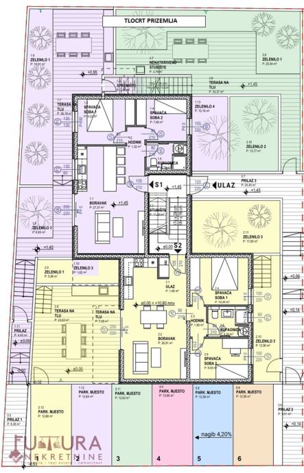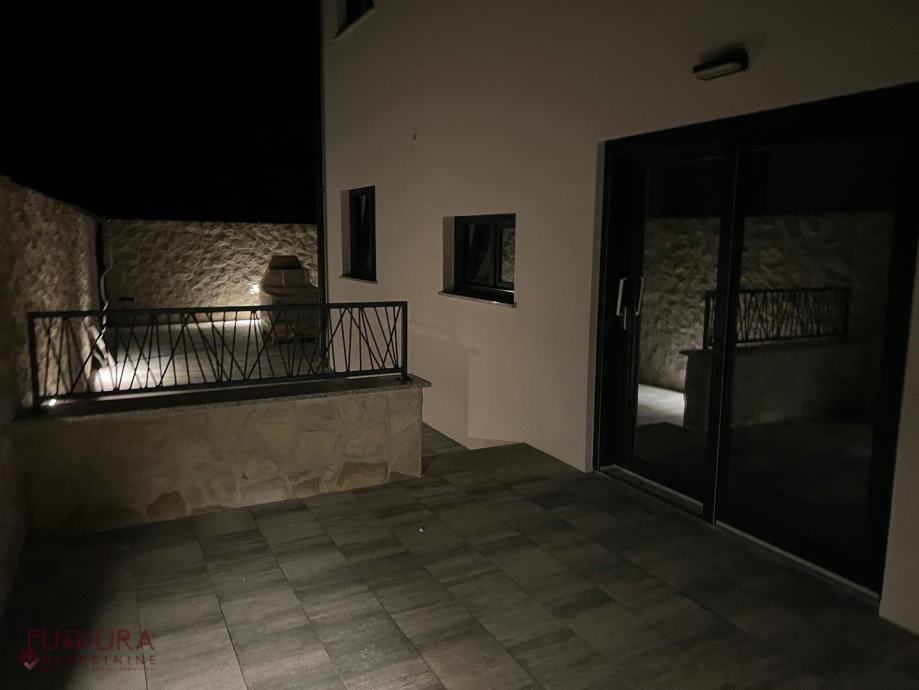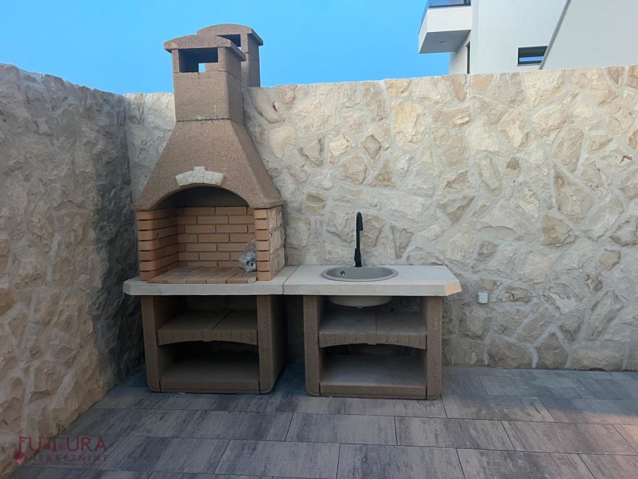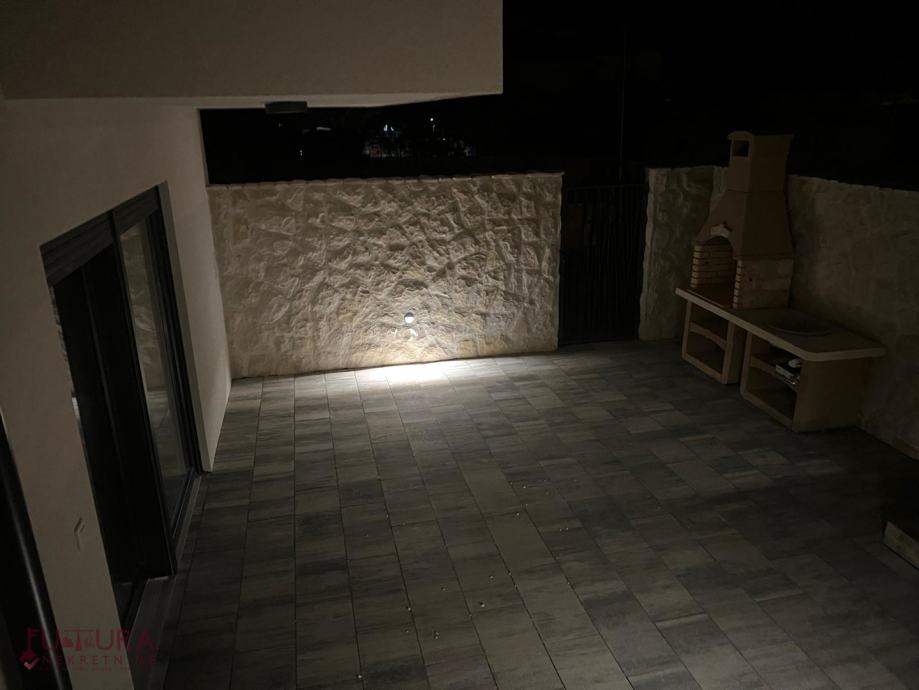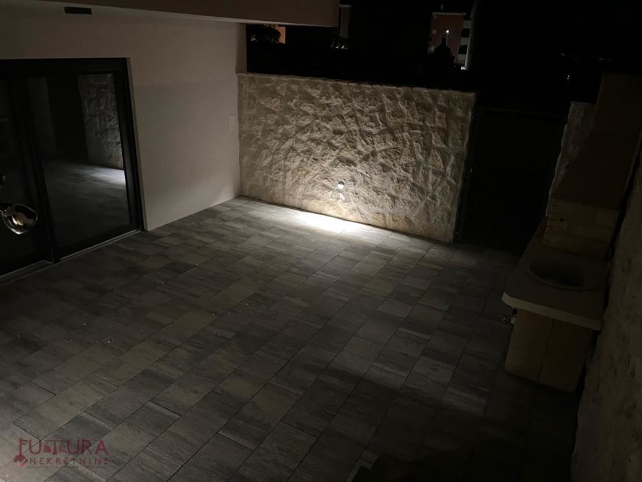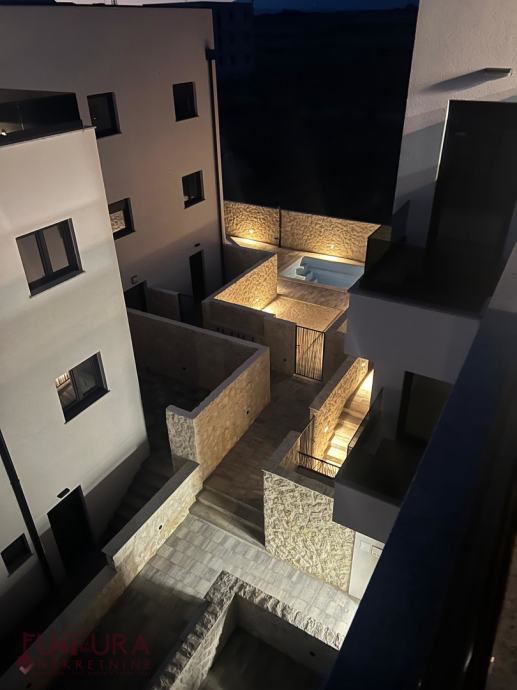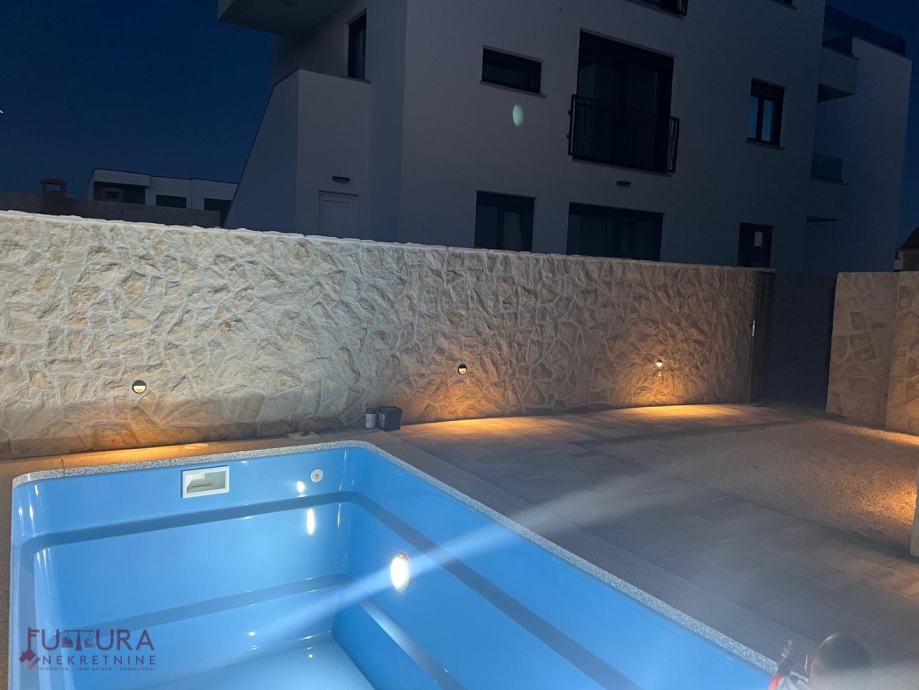 Posjeduje parkirno mjesto koje ima utičnicu za punjenje električnog auta (svaka parkirna utičnica je povezana sa brojilom struje od pripadajućeg apartmana), bazen 7m x 3m i vrt od 39,31 m2.