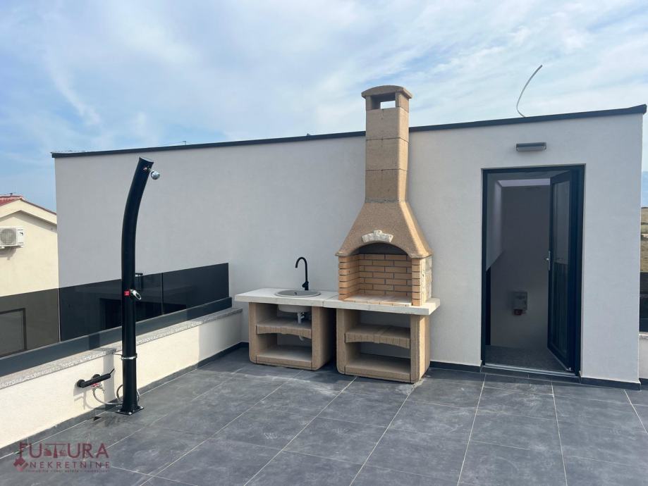 Posjeduje parkirno mjesto koje ima utičnicu za punjenje električnog auta (svaka parkirna utičnica je povezana sa brojilom struje od pripadajućeg apartmana), i krovnu terasu od 40,32 m2.