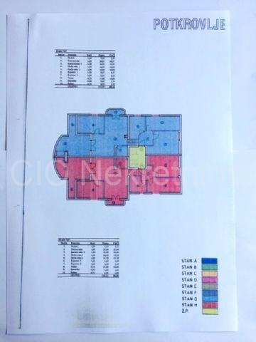 Stan u potkrovlju "G" - sastoji se od hodnika, dnevne sobe, spavaće sobe, dvije kupaonice, dvije dječje sobe, spremišta, balkona i terase, netto površine 104,61 m2, te pripadajućeg parkinga površine 12,00 m2.