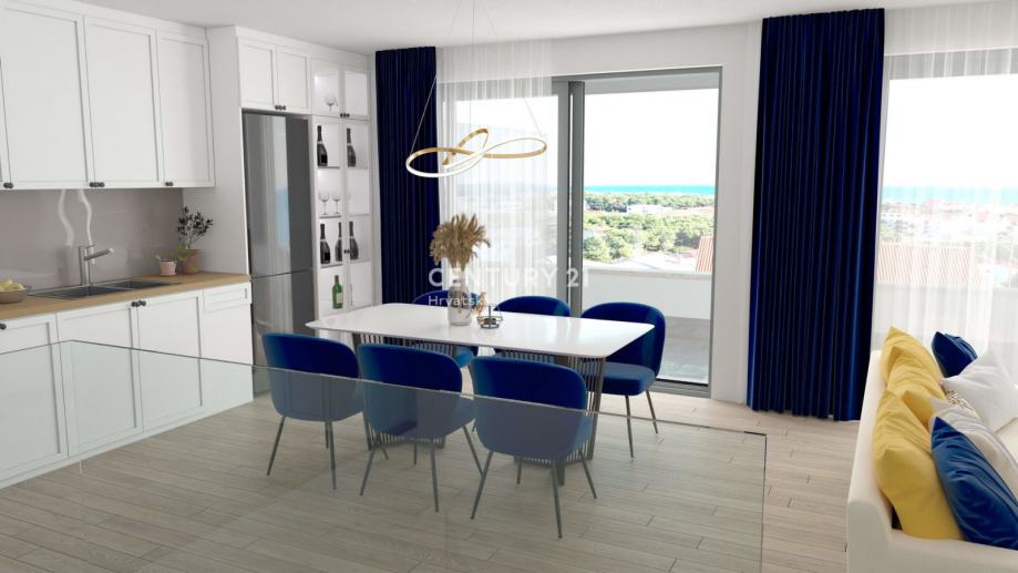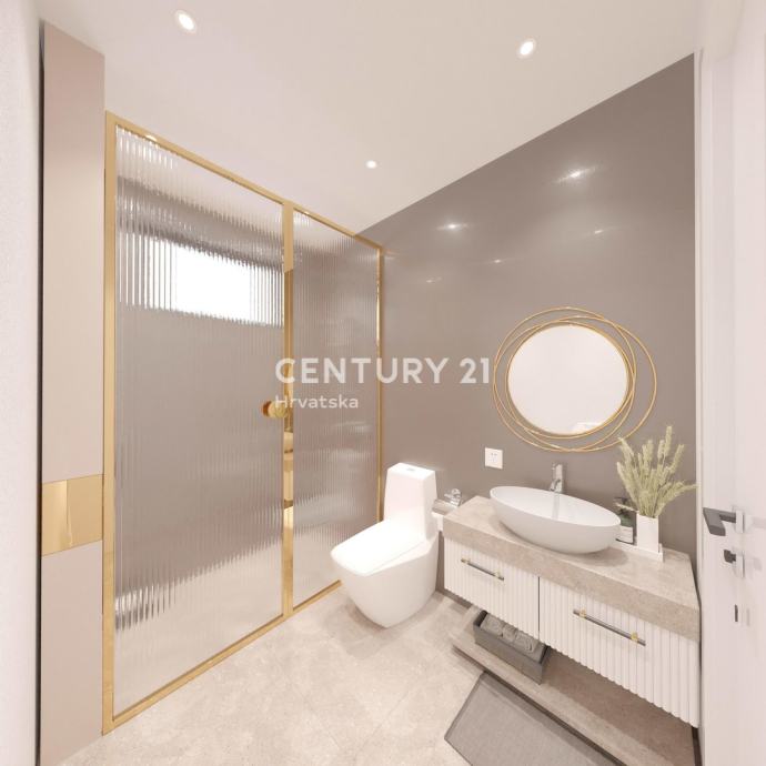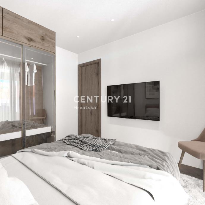 Stan koji se prodaje ima 2 spavaće sobe te dvije prostrane terase od 18,70 m2 svaka, s kojih se pruža otvoren pogled na more koje je udaljeno svega 180 metara.