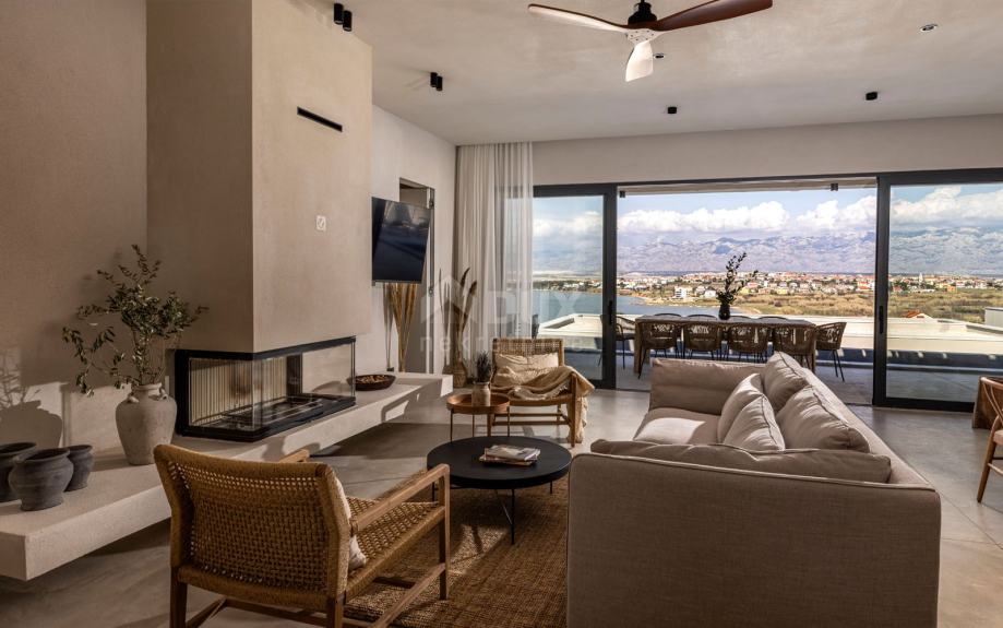 Prodaje se moderna jedinstvena vila, na jugozapadnoj obali otoka Paga smještenog u prirodnom krajoliku, samo 160 m od mora i pješčane plaže.