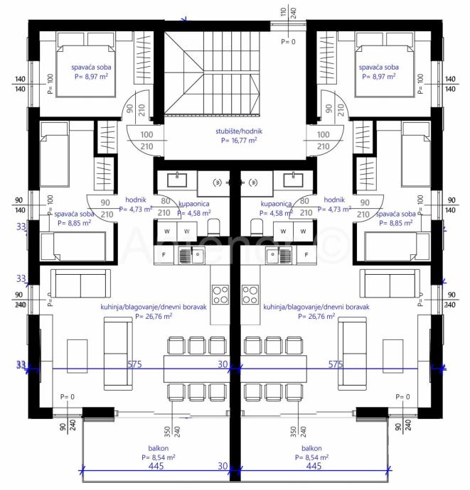 Pag - Povljana - prodaju se dva dvosobna apartmana na 2. katu manje stambene zgrade (ukupno 6 stambenih jedinica). Iz apartmana se pruža prekrasan pogled na more, a od plaže je udaljenost 300 m.