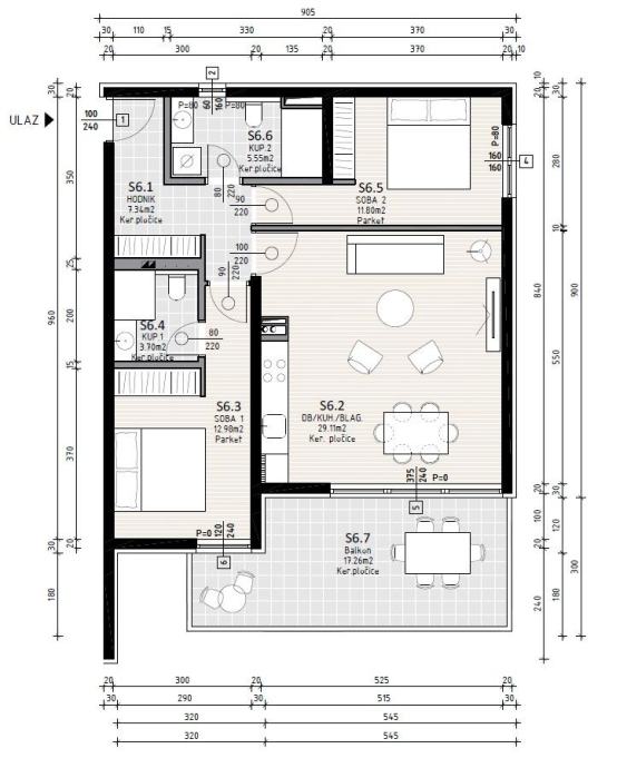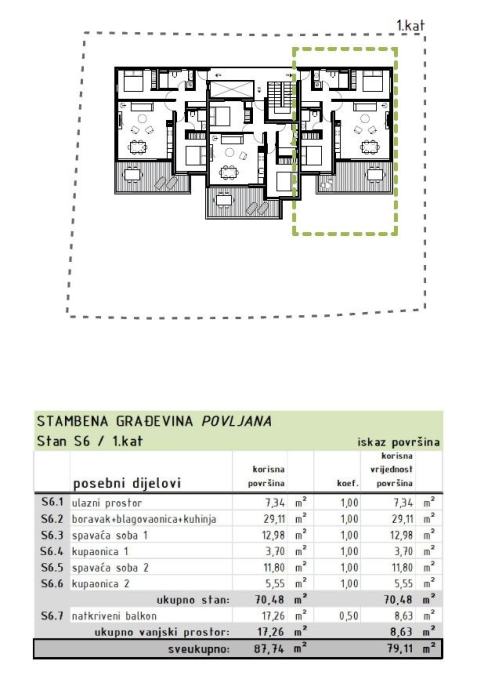 Stambena jedinica oznake S6 na 1. katu se sastoji od: