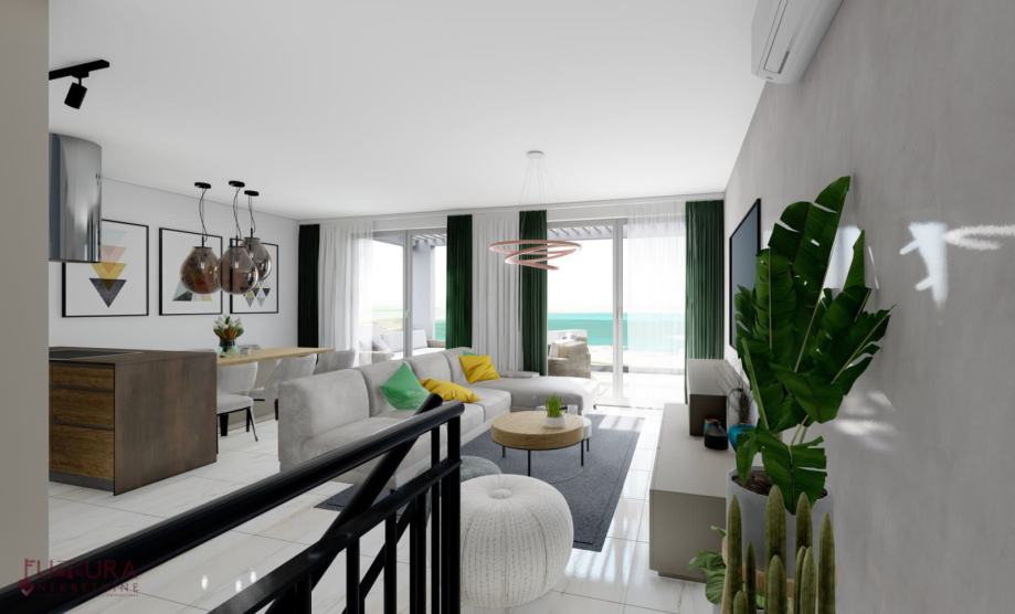Pag - Povljana, prodaje se trosobni dvoetažni apartman od 129,28 m2 na drugom katu stambenog objekta sa ukupno dvanaest apartmana izgrađenog 2022 godine, kvalitetna gradnja.