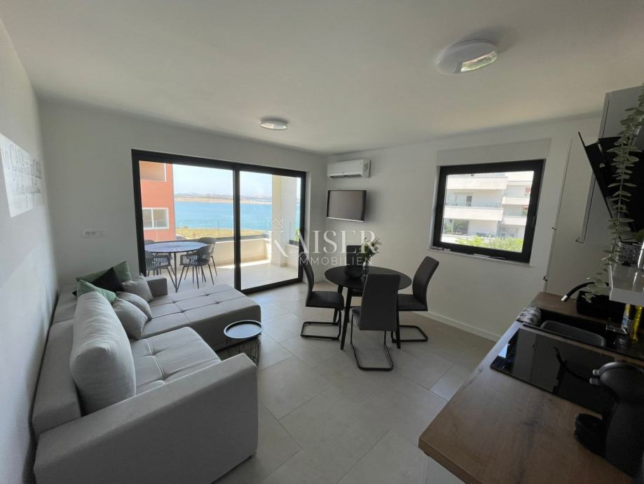 Na prodaju je moderan stan u novogradnji, smješten na 1. katu zgrade, udaljen svega 50 metara od mora i plaže!