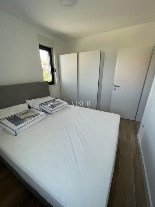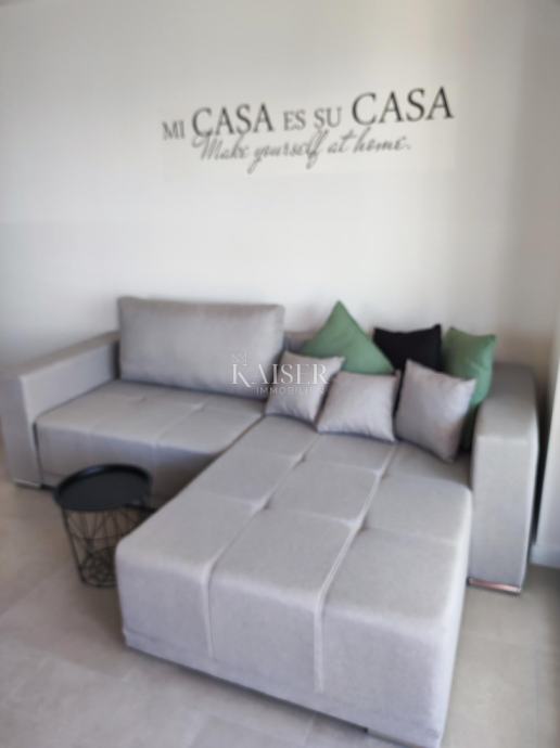 Stan ukupne površine 62 m² sastoji se od dvije spavaće sobe, kupaonice, te dnevnog boravka s kuhinjom i blagovaonicom. Prostor je suvremeno i ukusno namješten, s izlazom na terasu idealnu za uživanje u miru i mediteranskom zraku.