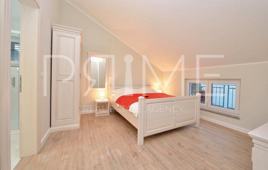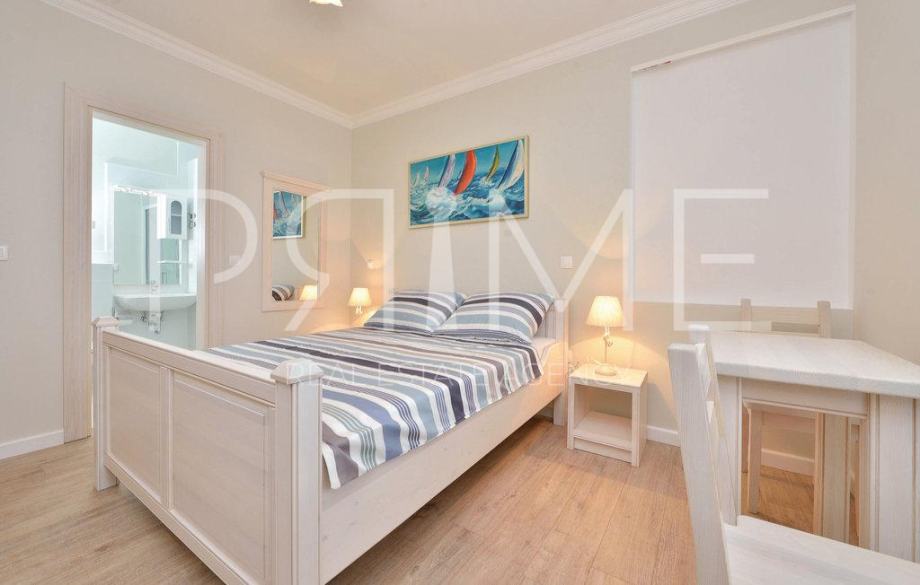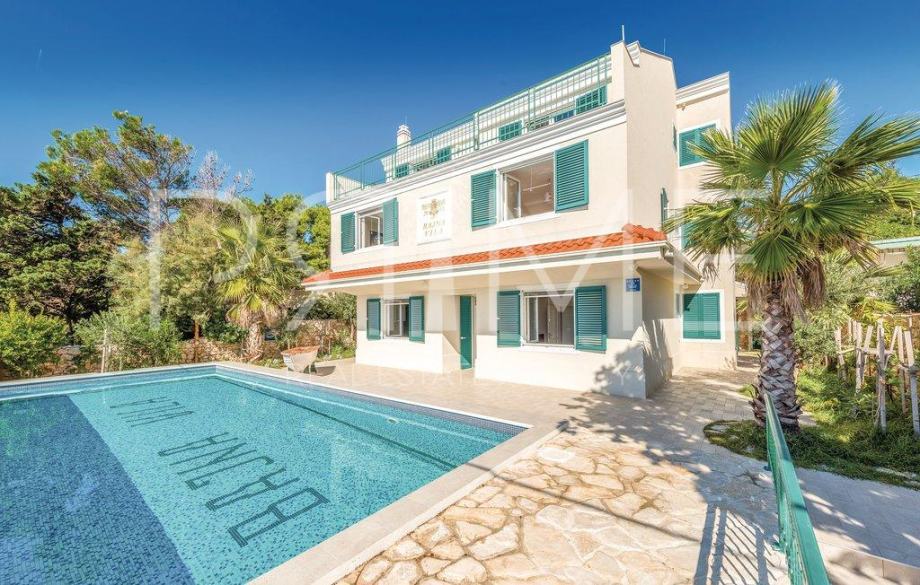 Predivna mediteranska vila nalazi se u prvom redu do mora na ekskluzivnoj lokaciji. Površine je 500 m2, sagrađena na parceli od 518 m2. Sastoji se od tri etaže; prizemlja, prvog kata i potkrovlja.
