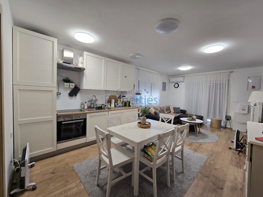 Prodaje se atraktivan trosoban stan neto korisne površine 63,56 m², od čega je ukupna korisna stambena površina 46,65 m². Stan se nalazi u prizemlju manje stambene zgrade moderne arhitekture, smještene u mirnom i zelenilom okruženom dijelu naselja, idealnom za obitelj ili kao investicija.