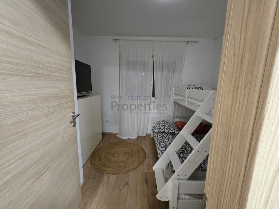 Stan se nalazi na izvrsnoj lokaciji, samo 1 km udaljen odmora i centra grada, u mirnoj zoni koja pruža savršenu ravnotežu između privatnosti i dostupnosti svih važnih sadržaja – trgovine, škole, javni prijevoz, restorani i plaže su na nekoliko minuta hoda.