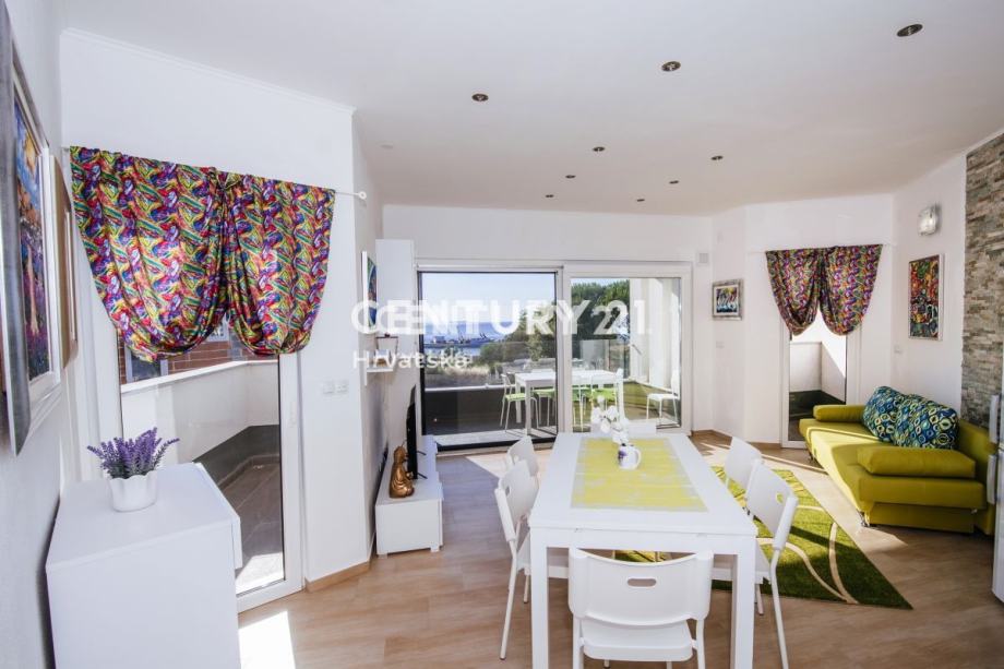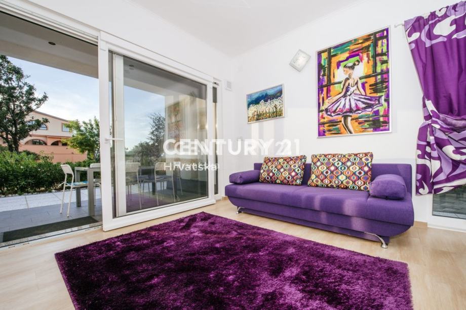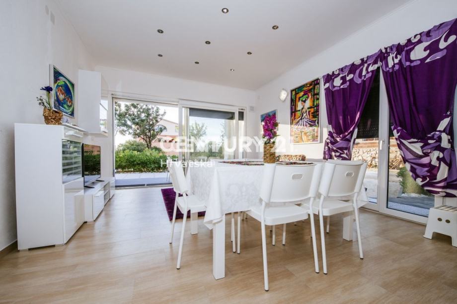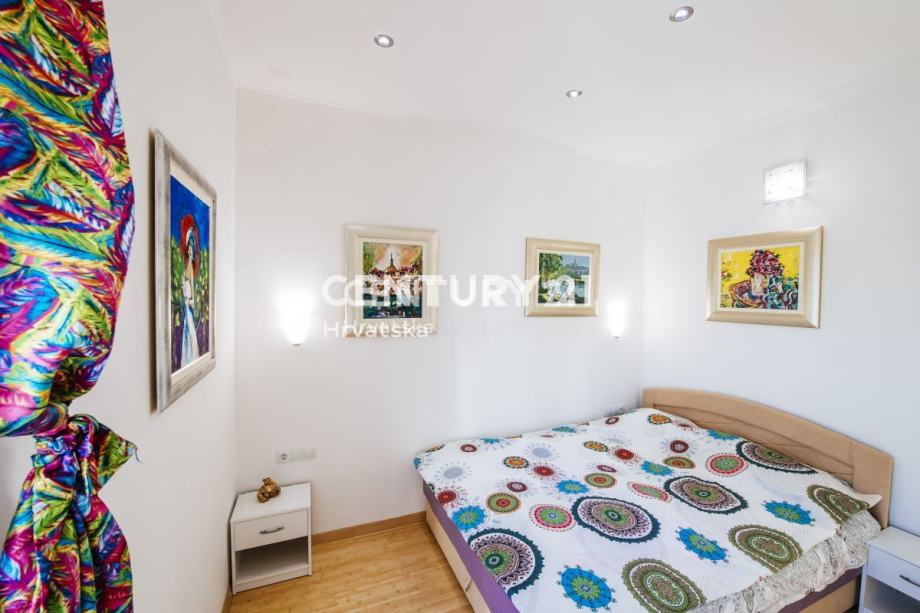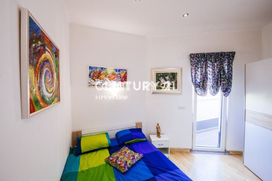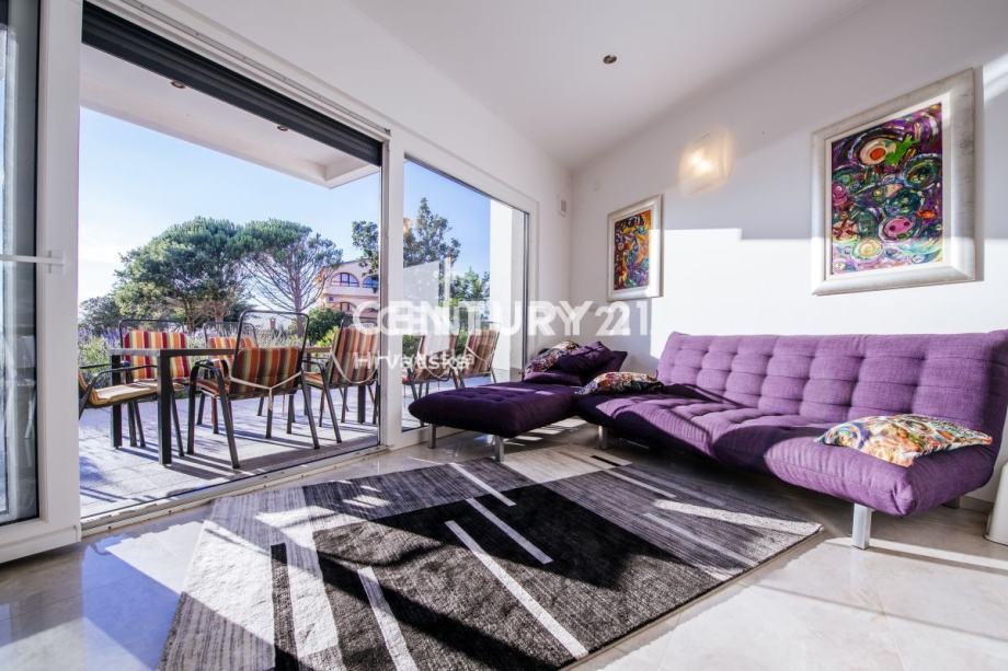 Nekretnina se prodaje u cijelosti: vila sa 4 apartmana, kompletno namještena i opremljena, sa svim slikama na zidovima, ljetnom kuhinjom, parkiralište, sa ležaljkama za terasu, vrtnim garniturama.