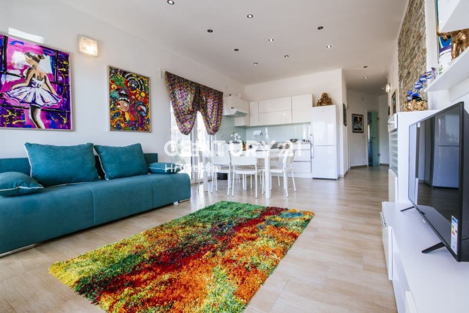 S 1 neto korisne površine 54,75 m2 ( DB +blagavaonica i kuhinja, 1 spavaće sobe, kupaonice, hodnika, dijelom natkrivene i ulazne terase )