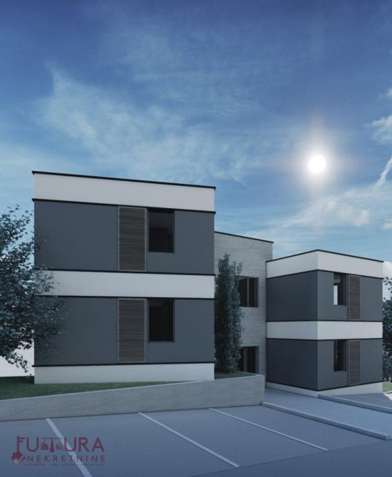 Sastoji se od: dvije spavaće sobe, dnevnog boravka + kuhinja + blagovaona, hodnika, kupaonice i terase.