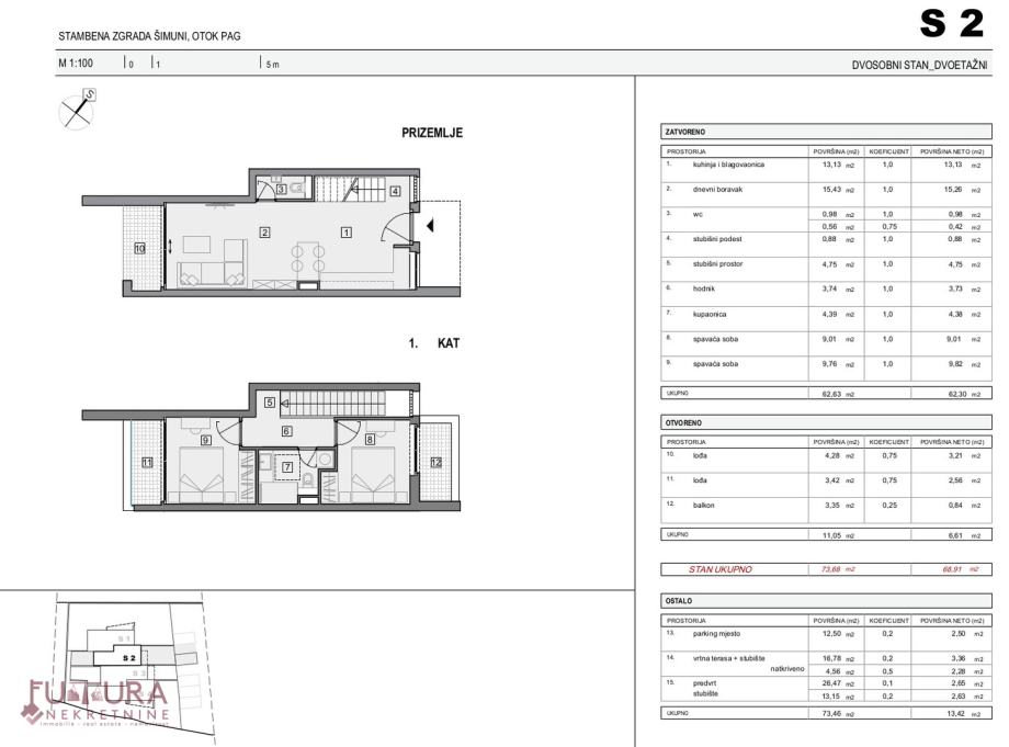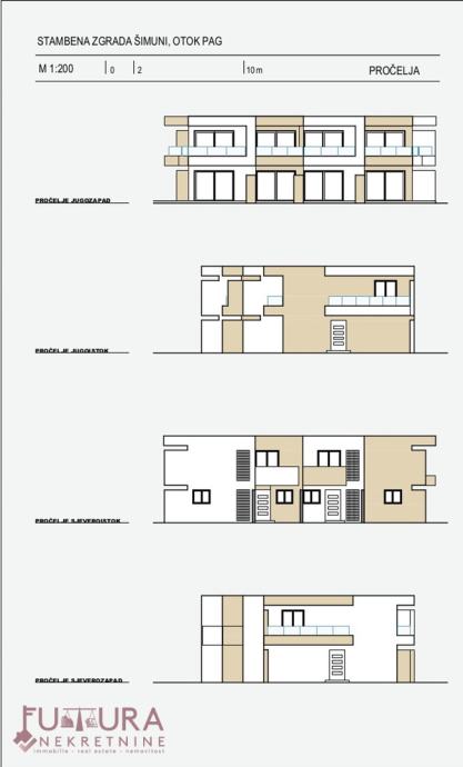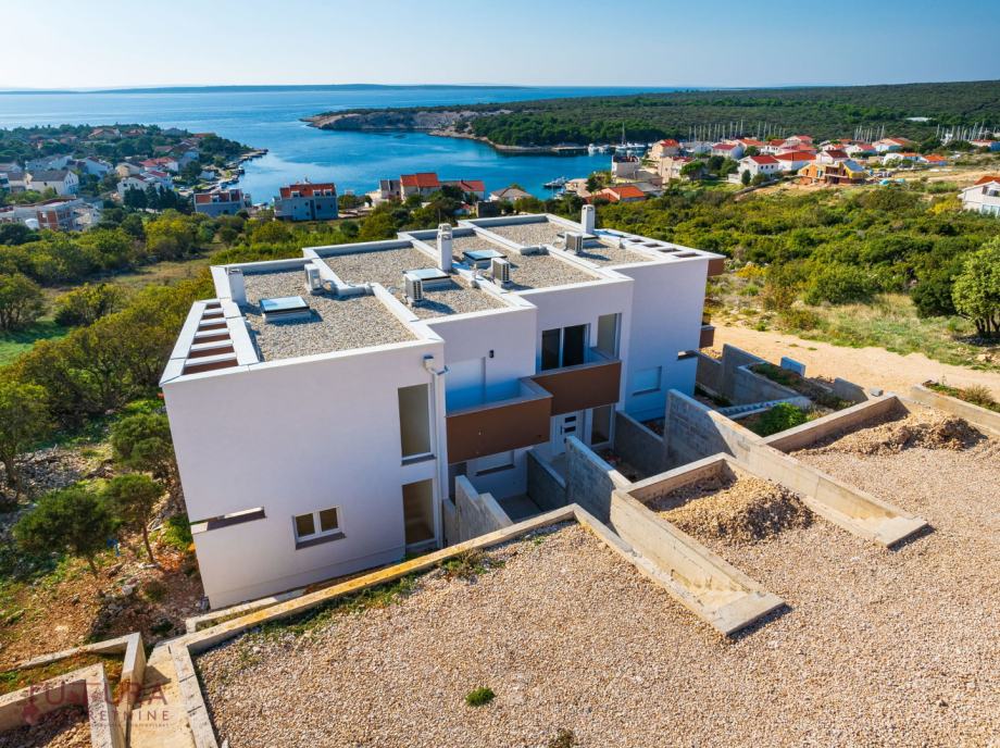 Pag - Šimuni, prodaje se kuća katnica u nizu od 82,33 m2 izgrađena 2024 godine.